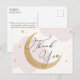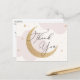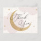 Obrigado seus convidados por comemorar a mamãe! Lua e Estrelas o obrigado do chá de fraldas temático que você postais apresenta nuvens de aquarela e estrelas douradas com lua de ouro com brilho. Personalize com suas informações ou clique em "Clique para personalizar mais" para editar estilos de fonte, tamanho e cores.