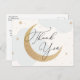 Obrigado seus convidados por comemorar a mamãe! Lua e Estrelas o obrigado do chá de fraldas temático que você postais apresenta nuvens de aquarela e estrelas douradas com lua de ouro com brilho. Personalize com suas informações ou clique em "Clique para personalizar mais" para editar estilos de fonte, tamanho e cores.
