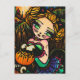 Cartão Postal Lua Noite de Halloween Kitty Cat Girl Fantasy Art