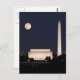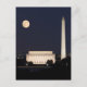 Lindo imagem de Washington DC à noite com o Memorial Lincoln, o Monumento de Washington e o Capitólio iluminados à medida que a lua de cheio sobe sobre os edifícios. Um presente encantador para quem visitou a capital da Nação