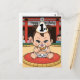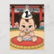 Esta imagem está no estilo de um desenho animado. Eu queria que o lutador de sumô bebê estivesse comendo um pedaço de bolo, embora pareça mais que está segurando o bolo na frente da boca. Coloquei o texto 'feliz' no lado esquerdo do '1º' e 'aniversário' no lado direito do '1º', então o cartão está dizendo 'feliz 1º aniversário'. O texto na imagem é editável. A imagem é conteúdo gerativo.