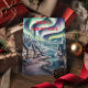Cartão Postal Luzes do Norte Sobre o Natal de uma Casa Encantado