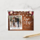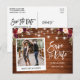 Script De Pincel Moderno, Estilo De Câmera Instantânea, Foto De Casal Salva O Cartão-Postal De Anúncio Do Noivado De Foto - Madeira De País Russo, Luzes De Corda. Inclui Watercolor Burgundy Floral com rosas, rosas vermelhas, rosas cor-de-rosa e verde botânico.