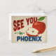Um cartão postal de viagens vintage da Arizona Phoenix encantador com uma adorável maçã vermelha, juntamente com um texto divertido no estilo retrô que diz, "Vemo-nos em Phoenix"