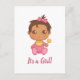 Bebê de desenho animado fofo vestido com macacão rosa e babador amarelo segurando um chocalho de bebê.