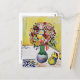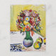 Cartaz de arte fino com o quadro Flores de Vida Estática e Três Maçãs (1910) do artista expressionista alemão August Macke (1887-1914). Um buquê de flores silvestres num vaso verde numa mesa com fruta contra fundo amarelo.