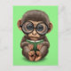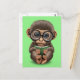 Cartão Postal Macaco-bebê bonito lendo um livro sobre verde