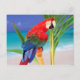 Cartão de animais mostrando uma bela arara escarlate numa paisagem tropical. A arara-escarpa (Ara macao) é um papagaio sul-americano grande, vermelho, amarelo e azul, membro de um grande grupo de papagaios neotropicais chamados araras. É nativo de florestas úmidas e verdes da América do Sul tropical. A faixa estende-se do extremo sudeste do México até o Peru amazônico, a Bolívia, a Venezuela e o Brasil nas terras baixas.