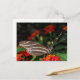 Um cartão postal criado com uma macro fotografia de uma borboleta Zebra Longwing que repousa sobre um nó de flores.