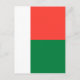Bandeira de Madagáscar. A bandeira malgaxe foi adotada em 14 de outubro de 1958, dois anos antes da independência dessa nação, quando Madagáscar preparou-se para um referendo sobre o seu estatuto na Comunidade Francesa. As cores da bandeira representam a história de Madagáscar, anseiam pela independência e as classes tradicionais. Vermelho e branco eram as cores do reino Merina, que sucumbiu à França em 1896. Eles foram usados na bandeira do último monarca Merina, Rainha Ranavalona III. Podem indicar as origens étnicas das pessoas malgaxes no Sudeste Asiático e são partilhadas pela bandeira da Indonésia. Verde era a cor do Hova, a maior classe de plebeus camponeses, que desempenhava um papel significativo na agitação antifrancesa e no movimento de independência.