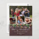Cartão postal de Natal rústico vintage com fundo de madeira escura, fotos de você e sua família, galhos de árvore de Natal festivos, enfeites de árvore vermelhos e dourados e luzes cintilantes. Fotografia © Storytree Studios, Stanford, CA