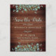 Reserve a Data! Anuncie o seu casamento a amigos e familiares com estas madeiras rústicas e folhas de cor d'água eucalipto salvam os cartões postais. Personalizar com nomes, data do casamento, localização. Adicione qualquer outra informação na parte de trás. Este casamento botânico único, guardando as cartas, vai causar uma impressão duradoura, seus convidados vão salvar a data! COPYRIGHT © 2020 Judy Burrows, Black Dog Art - Todos Os Direitos Reservados. Rústica Madeira Eucalyptus Greenerescente Salve A Data Cartão Postal