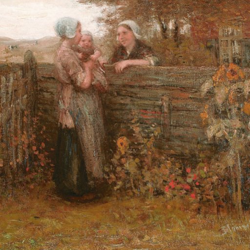 Uma imagem de cor suave com o sentimento impressionista. A jovem mãe segurando seu filho olha para a água.