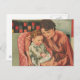 Este é um belo cartão de posto com uma ilustração de uma revista com uma mãe e uma criança.