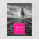 Este cartão exumenta uma vibração muito legal com uma foto em preto e branco de uma mulher com um guitarra pulando sobre seus trilhos caminhando pelas costas contrastando com a marca de palavras branca "Mães ROCK" em rosa claro.