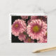 Este lindo cartão-postal floral apresenta um doce crisântemo rosa em um fundo escuro. As cores pétais variam de uma pincelada pálida a uma magenta profunda em direção ao centro. Os próprios centros são verdes e amarelos.
