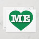 Este cartão-postal apresenta um coração verde vibrante contendo as letras maiúsculas, brancas e em negrito ME, a abreviação oficial de Maine, o estado do pinheiro. O reverso da placa é vazio, aguardando seu texto personalizado ou sentimentos escritos à mão.