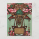 Mês de Maio. Signo de Gêmeos. Linda arte de astrologia Art Nouveau vintage, com influência Art Déco, publicada como cartão postal em 1911. Muito colorida com flor de nascimento, pedra de nascimento esmeralda, cores rosa e verde brilhantes e letras maiúsculas.