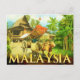 Cartaz legal da Malásia com carrinho de bullock e imagem da vila Malay no fundo.
