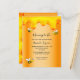 Elegante, divertido, convite para chás de fraldas de verão. Um pouco metálico dourado, fundo com aspecto de folha de alumínio e pingos de mel. Decorado com mamangabas felizes sorrindo. Com o texto: Mamães para a Abelha e o nome da mãe a ser escrito com um moderno estilo escrito à mão. Letras negras. Sexo neutro.