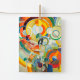 Carrossel de Porcos (Manège de Cochons) (1922), de Robert Delaunay, é um exemplo vívido da abordagem distintiva do artista em relação à abstração e ao uso de cores vibrantes. Como figura-chave no movimento Orfismo, Delaunay utilizou formas ousadas e sobrepostas e esquemas de cores dinâmicos para criar movimento dentro de suas composições. Esta obra de arte apresenta representações abstratas de um carrossel, com formas circulares e figuras lúdicas evocando o movimento e a energia do passeio. O trabalho de Delaunay funde cor e forma para produzir um senso de ritmo e excitação, convidando o espectador a experimentar a natureza animada e quase caprichosa do assunto por meio da abstração moderna.