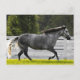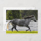 Um cavalo de Cinza Dapple fotografou galopando em uma manhã ensolarada de outono. As maçãs são uma variação de cor mais comumente observada em cavalos de cinza.