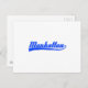Manhattan, Cidade de Nova York, escrito com um rabisco (cauda). Fontes em branco e azul. Design de texto original.