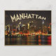 Uma visão dramática do horizonte de Manhattan à noite. Nova Iorque de luzes de arranha-céus do centro da cidade refletem lindamente fora do rio.