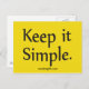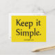 Porquê complicar as coisas? A simplicidade é o caminho a seguir. Lembre-se a si mesmo e aos outros com este cartão postal.