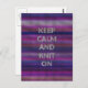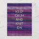 Mantenha a calma e tricote! Impressão plana de tricô multicolorido com texto branco em listras em tons roxos, azuis e vermelhos. O presente perfeito para quem ama tricô.