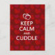 Fique calmo e abraço. Um Dia de os namorados bonito e engraçado com a tendência popular de cultura "mantenha a calma e o carregar". Dois corações vermelhos e brancos bonitos enviam uma mensagem sentimental para o seu amado. Corações vermelhos escuros e texto branco é excelente para um namorado, namorada ou amigo peludo que ama se abraçar e se aproximar. Todos os Designs Copyright © 2012 www.CuteComfy.com