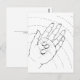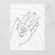 Mão aberta, com três joias. Os raios de sol estão saltando em arco no fundo. Pinte este item você mesmo usando canetas hidrográficas ou gel, lápis, ou outro meio, você pode colorir este cartão postal com seu próprio estilo artístico. Ou, deixe o destinatário do cartão fazer a colorização.