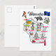Cartão Postal Mapa de Wisconsin com Destinos Turísticos