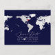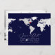 O mapa de cinzas prateadas iridescentes do PixDezines no Marinho DIY para qualquer destino, salve a data com a moderna fonte de script manuscrito divertida e as fotos do noivado na frente e no verso dos cartões postais. Copyright © 2008-2019 PixDezines™. Todos os direitos reservados.