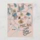 Cartão Postal Mapa ilustrado da cidade de Milão - Itália