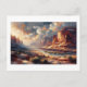 A luz do sol ilumina uma paisagem desértica de deserto que respira, lançando tons quentes sobre as torres de rochas vermelhas dos Recifes Capital. Nuvens lisas enchem o céu, melhorando a beleza natural dramática e serena da cena.