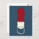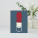 Este cartão postal apresenta uma ilustração simples de um chapéu de banda marcial com penas no topo em creme ou marfim e vermelho escuro, colocado sobre um fundo azul marinho