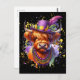 Vaca das Terras Altas Mardi Gras de Watercolor, com um chapéu roxo com penas e miçangas vestidas.