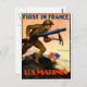 Poster da Primeira Guerra Mundial do Corpo de Marinhos dos Estados Unidos retratando os Fuzileiros Navais que vão para o topo em uma carga das suas trincheiras da linha da frente. O poster diz " Primeiro na França - Fuzileiros navais dos EUA "