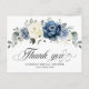 Cartão Postal Marinho azul Dusty Champagne Ivory Floral Obrigado