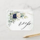 Este elegante e personalizável modelo de cartão poste de núpcias nupcial rsvp apresenta um belo buquê de azul marinho e azul escamoteado, folhas de eucalipto verde-aquarela e estrutura geométrica de ouro moderna. Por favor, encontre mais designs e variações correspondentes na minha loja de "blisswedingpaperie". ou sinta-se à vontade para contactar-me para mais personalizações ou itens correspondentes.