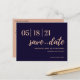 espalhe a notícia da data de casamento com este marinho de classe e o pink pinto, salve o cartão de data. com uma combinação moderna de tipo negrito com letra de script, isso está em tendência, mas também em eterno