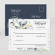 Este cartão postal de resposta ao evento de casamento RSVP com o Código QR e o endereço de retorno apresentam um estilo moderno elegante com folhas de folhagem verde em aquarela e lindas caligrafias e fontes de tipografia limpa e serif em um fundo azul marinho. A simplicidade e a design limpa deste cartão de resposta RSVP de casamento funciona bem com todos os temas de casamento e definitivamente um acréscimo excelente ao seu casamento. Apenas personalize os nomes dos casais, data, site de casamento, Código QR e outras informações em alguns passos fáceis e personalize-os para lhe dar um toque pessoal agradável. Por favor, note: as belas e elegantes frases de tipografia de "gentilmente responder" e "gentilmente entregar a" juntamente com a aquarela verde folhagem eucalipto folhas arranjos e outros elementos gráficos de trabalho de arte, como as linhas e caixas retangulares, não podem ser editados, alterados, movidos ou excluídos. Eles estão consertados.