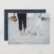 Azul marinho pintado + inscrição manual em roteiro fotografia obrigado de casamento você cartão-postal. Parte de uma suíte de casamento.