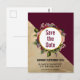 Cartão Postal Mármore Dourado e Floral Borgonha Salve a Data