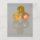 Três bolas de vidro laranja empilhadas, mostrando reflexão.