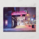 Um marco de cinema brilha na neve em queda numa rua urbana no Upper West Side, em Nova Iorque