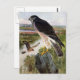 Um norte harrier ou gavião-pântano sentado em um toco sobre pântanos numa ilustração antiga de um livro de aves de 1922.