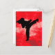 Nossas Artes Marciais relâmpagam design em vermelho com uma mulher artista marcial.