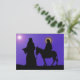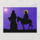 Celebre o verdadeiro significado do Natal. José conduzindo a mula de Mary através do deserto a caminho de Belém, seguindo a Estrela do Norte. Silhueta contra o fundo noturno. Desenho multicor.